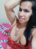 Sono una voluttuosa trans colombiana che guarda le mie tette, le mie piante dei piedi e il mio giocattolo nel culo