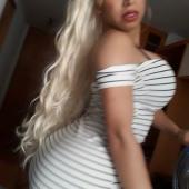 Sono una voluttuosa trans colombiana che guarda le mie tette, le mie piante dei piedi e il mio giocattolo nel culo
