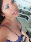 Sono una voluttuosa trans colombiana che guarda le mie tette, le mie piante dei piedi e il mio giocattolo nel culo