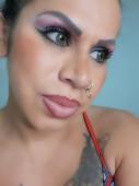 Sono una voluttuosa trans colombiana che guarda le mie tette, le mie piante dei piedi e il mio giocattolo nel culo
