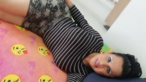 Sono una voluttuosa trans colombiana che guarda le mie tette, le mie piante dei piedi e il mio giocattolo nel culo